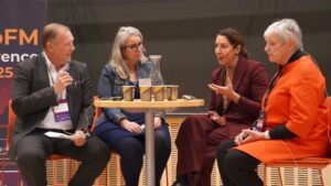 In this very first episode of the EuroFM Podcast ‘FM Without Frontiers,’ Chair Natalie Hoffman hosts a discussion (Live from World Workplace Europe) on sustainability in Facility Management with ambassadors